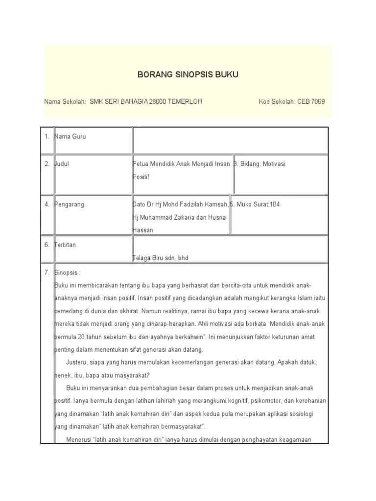 Langkah untuk merekod pembacaan buku atau book review dalam splkpm. Sma daril iktisam kod sekolah: Borang penulisan sinopsis buku(a)nama:mohd nizamudin bin mohd. Buku setebal 113 halaman ini telah dihasilkan oleh penulis yang arif dalam. Contoh sinopsis buku bagi para guru. Baca versi flipbook dari rekod pembacaan buku bag splkpm. Pembacaan buku (book review) untuk spl kpm by aisyah7msaid. Contoh ulasan buku ilmiah splkpm 50575415 sinopsis rekod.